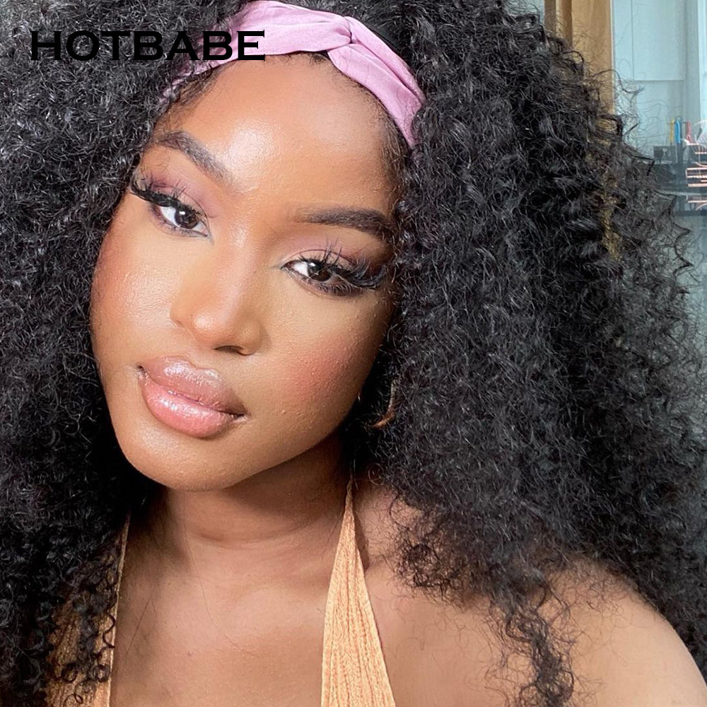 Afro Kinky Curly Silk Headband Wigs Human Hair for Black Women